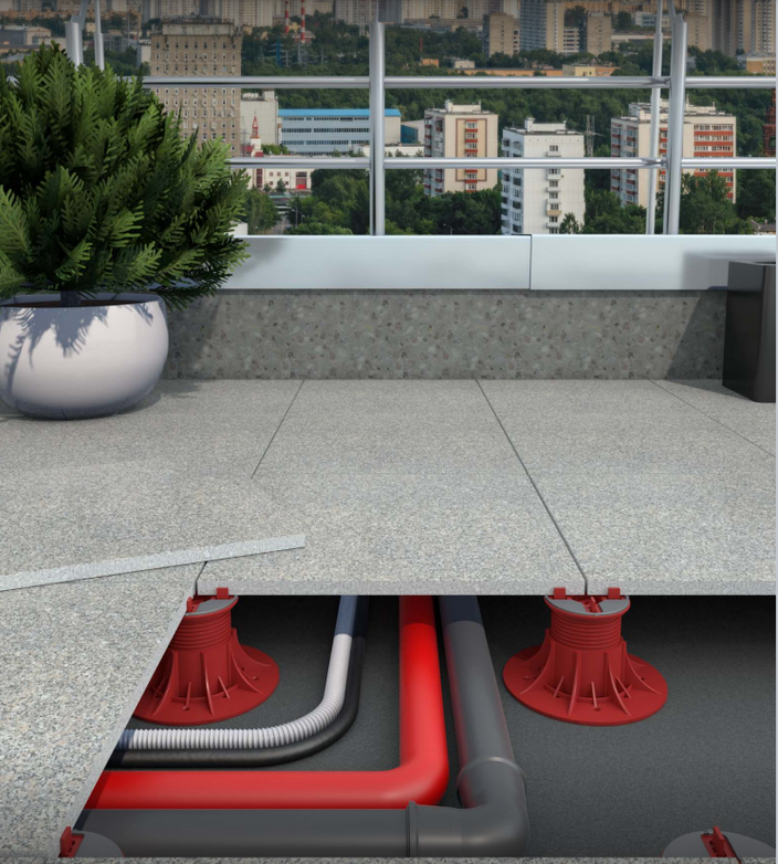 Опоры могут использоваться с различными видами напольных покрытий на открытом воздухе при температуре от -40°С до + 80°С
