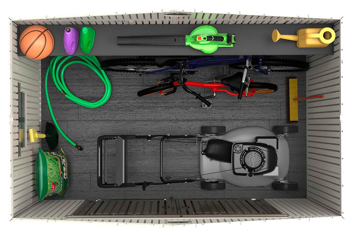 - Удобство хранения: Отлично подходит для размещения инструментов, садового инвентаря и прочих принадлежностей