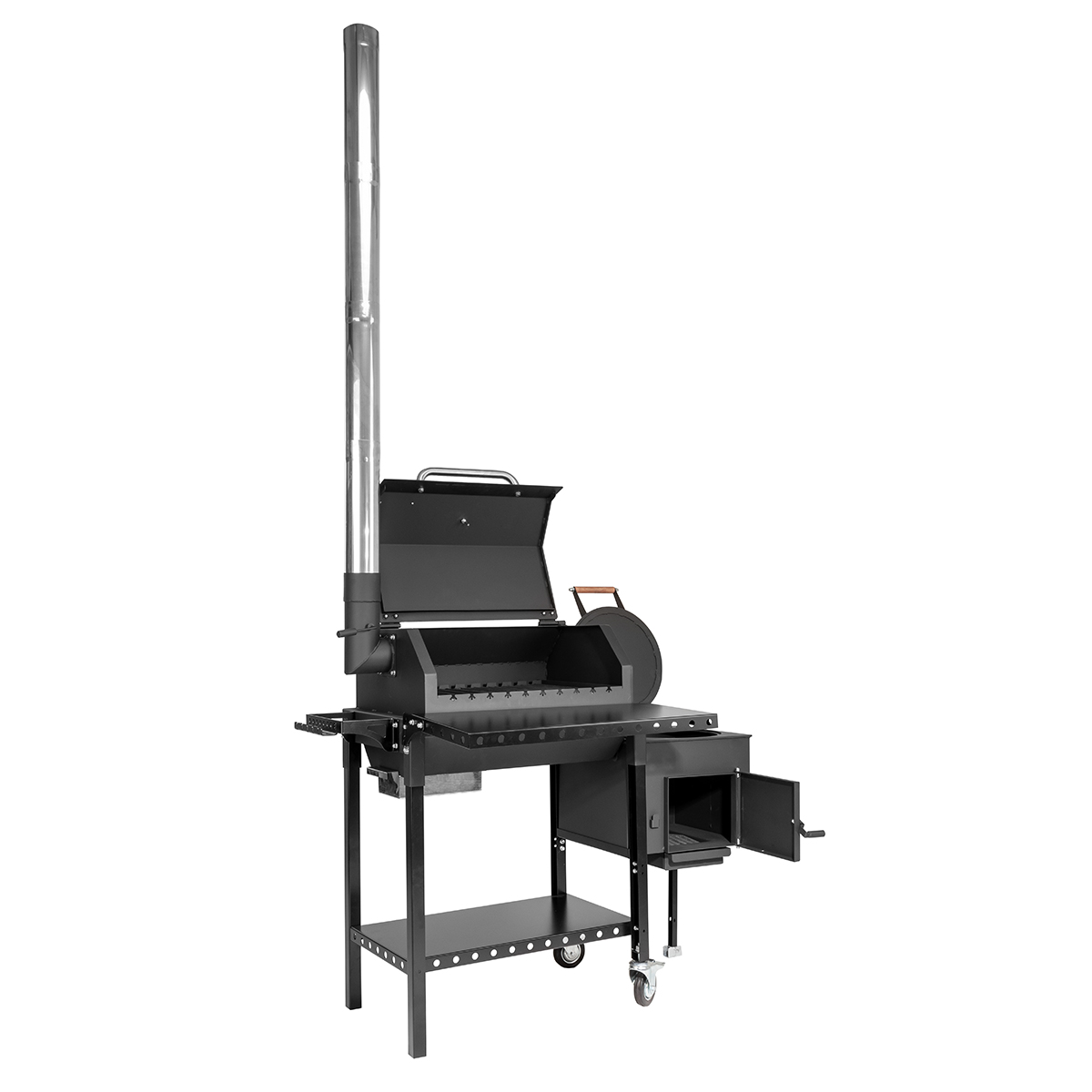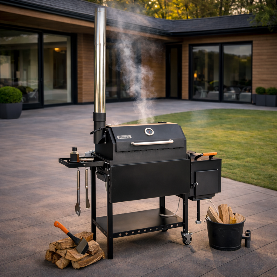 Смокер-гриль — это многофункциональное и простое в обращении устройство, которое объединяет в себе мангал, барбекю, гриль, коптильню горячего копчения и печь под казан.