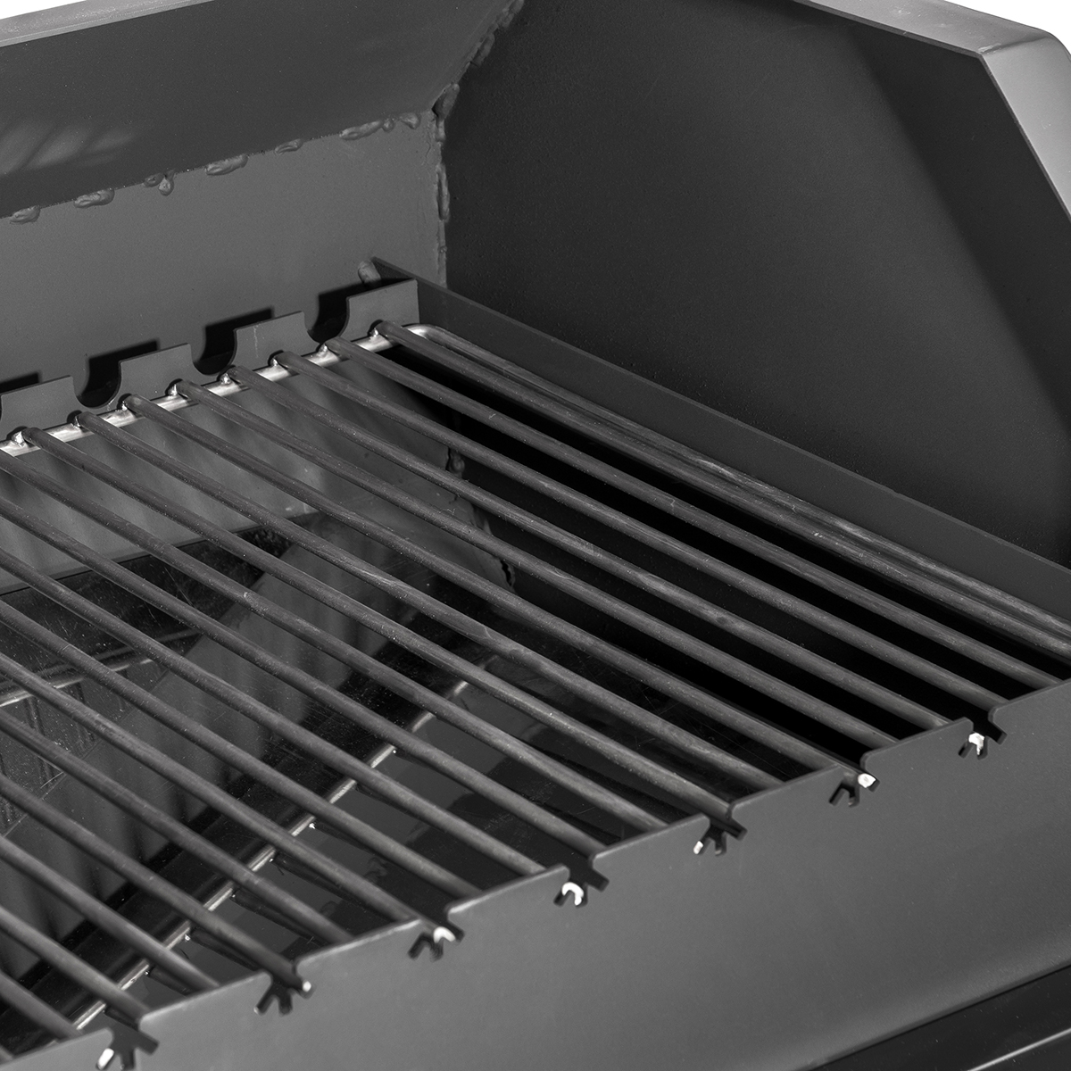 Фигурные вырезы в стенках жаровни (по краю) позволяют удобно и надёжно фиксировать шампуры в нужном положении.